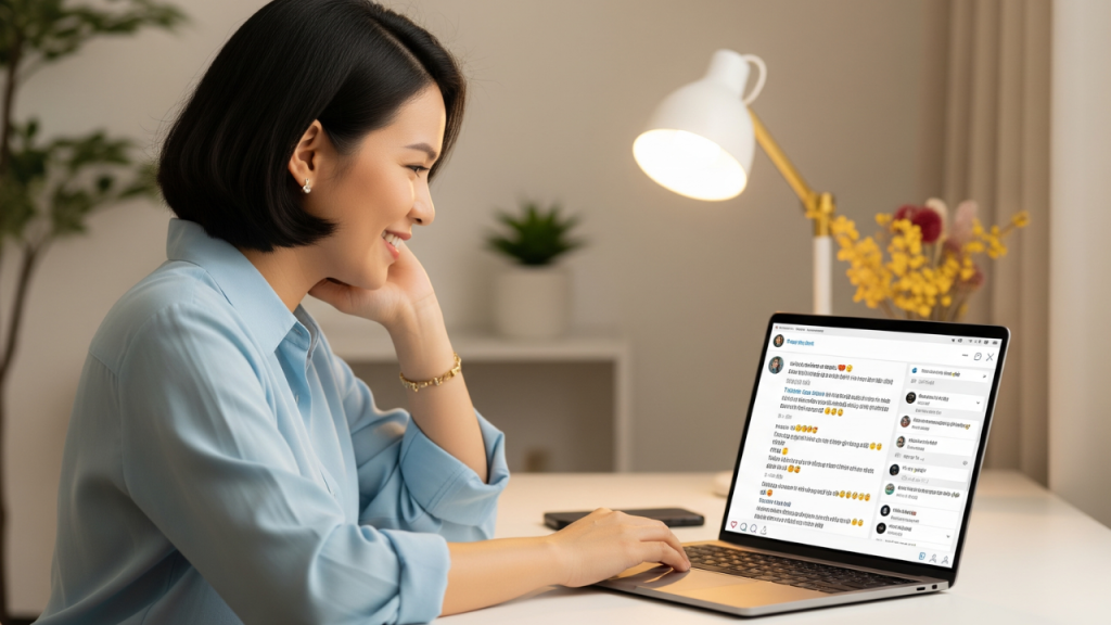 Hôm nay cũng như mọi ngày, sau khi vật lộn để cho Tôm ăn, Minh Anh lại ngồi lỳ trước màn hình laptop, lướt qua cuộc sống của người khác. Những chuyến đi phượt lên Bà Nà, những buổi hẹn hò ở quán cà phê ven sông Hàn, những bức ảnh bikini rạng rỡ trên bãi biển Mỹ Khê… Tất cả đều đẹp, đều lấp lánh, và đều không thuộc về cô. Cô chỉ là một khán giả thầm lặng, dõi theo cuộc đời của người khác qua một ô cửa sổ điện tử.