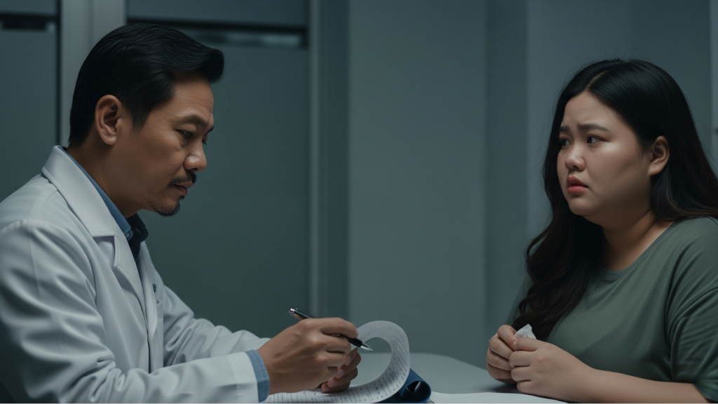 Phòng khám vắng người, nhưng không khí đặc quánh mùi thuốc sát trùng và sự im lặng khiến Minh Anh càng thêm căng thẳng. Sau hàng loạt các xét nghiệm, cô ngồi đối diện với vị bác sĩ trung niên. Ông nhìn vào kết quả trên bàn, rồi nhìn cô bằng ánh mắt vừa thông cảm, vừa nghiêm khắc. “Cô Minh Anh, 25 tuổi,” ông chậm rãi nói, “Các chỉ số mỡ máu, đường huyết và huyết áp của cô đều đang ở mức báo động đỏ. Cơ thể của cô đang phải làm việc quá sức để gồng gánh trọng lượng này. Nếu tình trạng này tiếp tục, nguy cơ mắc bệnh tim mạch, tiểu đường tuýp 2, thậm chí là đột quỵ sẽ không còn là nguy cơ nữa, mà là điều chắc chắn sẽ xảy ra trong vài năm tới.”